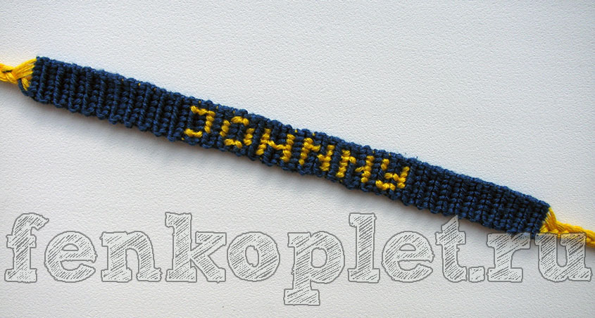 Ну вот и всё. Теперь ты умеешь плести фенечки с именами и можешь одарить всех своих друзей такими именными феньками.