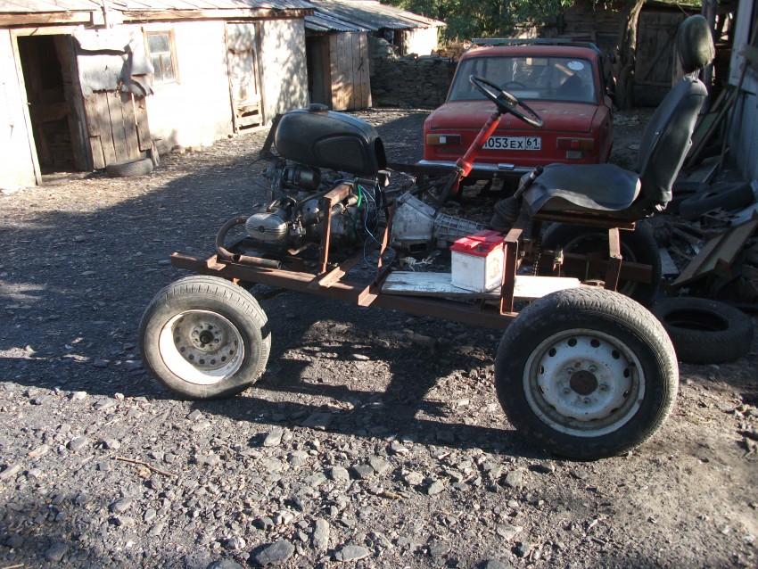 Материальной базой для создания самодельных тракторов служит в основном Советское наследство оставшееся от некогда Огромной и Мощной Сверхдержавы, а именно узлы и агрегаты Отечественного автопрома, запчасти от тракторов, с/х машин, грузовых авто, вообщем весь металлолом идет в дело) Как правило рама самодельная сваренная из швеллера или же профиля прямоугольного сечения, далее на раму устанавливаются задний укороченный мост ВАЗ, УАЗ, колеса передние от легкового авто, задние от грузовика или трактора типа МТЗ (передние) Двигателя обычно устанавливают ВАЗ или ЗАЗ, а так же Москвич, ОКА, вообщем у кого что имеется в наличии то и ставят, главное чтоб работало) Так же ранее ставили ДВС типа УД (универсальный двигатель) но он прожорливый и карбюратор необходимо менять на автомобильный. Так же ребята самостоятельно собирают КВАДРАЦИКЛЫ И так, давайте рассмотрим варианты самодельных тракторов из деревенской глубинки.