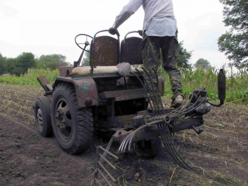 Трактор пашет, культивирует, боронует, сажает и выкапывает урожай по осени, отличный помощник. С недавнего времени ребята стали оснащать трактора самодельными кабинами, дабы защитить себя от дождя и палящего солнца во время работы.