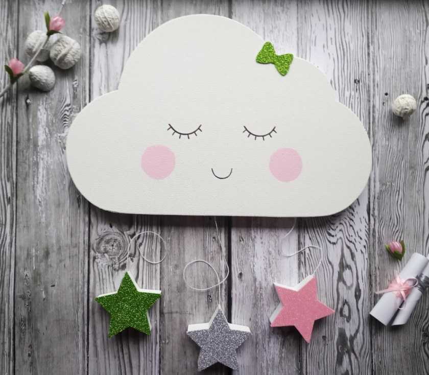 В детской комнате украсить изголовье кровати из пенопластовых букв можно, составив имя малыша, или вырезать его любимых героев мультфильмов.