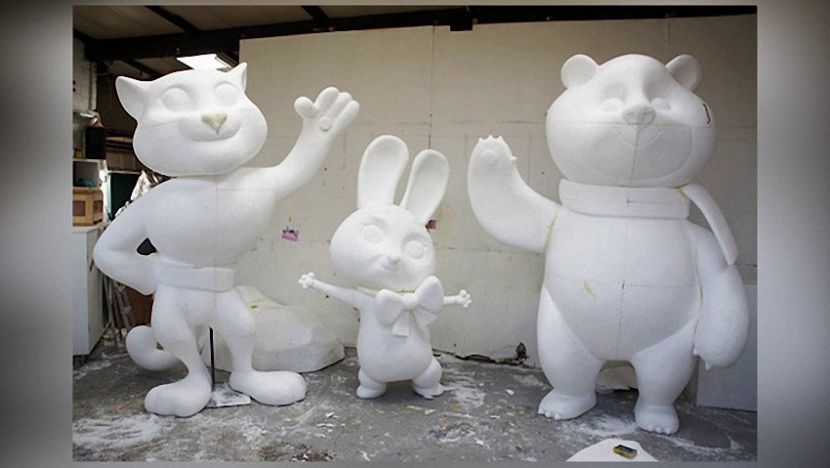 Для создания более прочных, тяжелых и объемных фигур пенопластовый каркас может быть покрыт цементом или монтажной пеной.