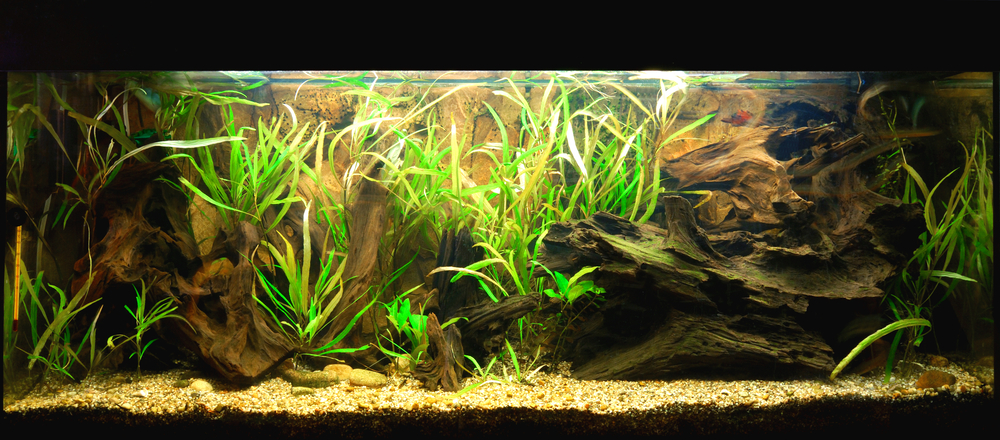Чтобы аквариум имитировал уголок водного пространства дикой природы, следует избегать слишком плоского ровного грунта