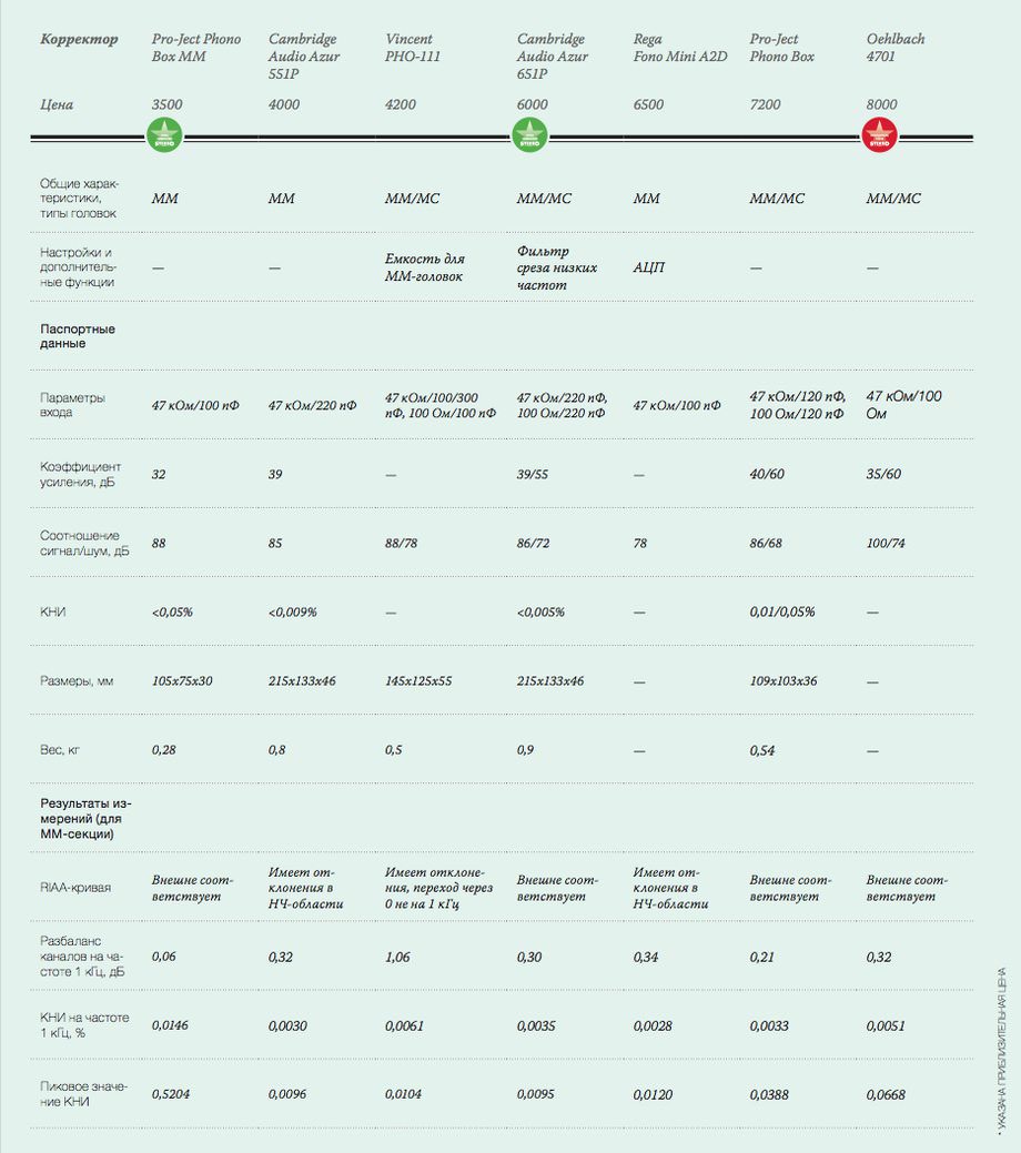 Характеристики фонокорректоров