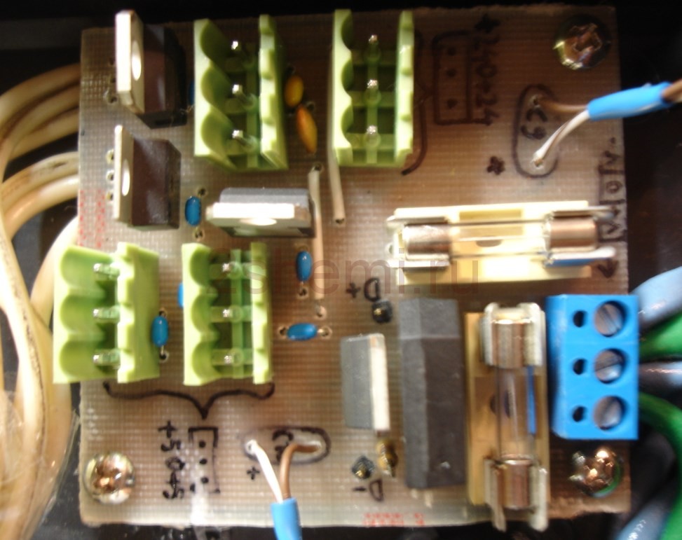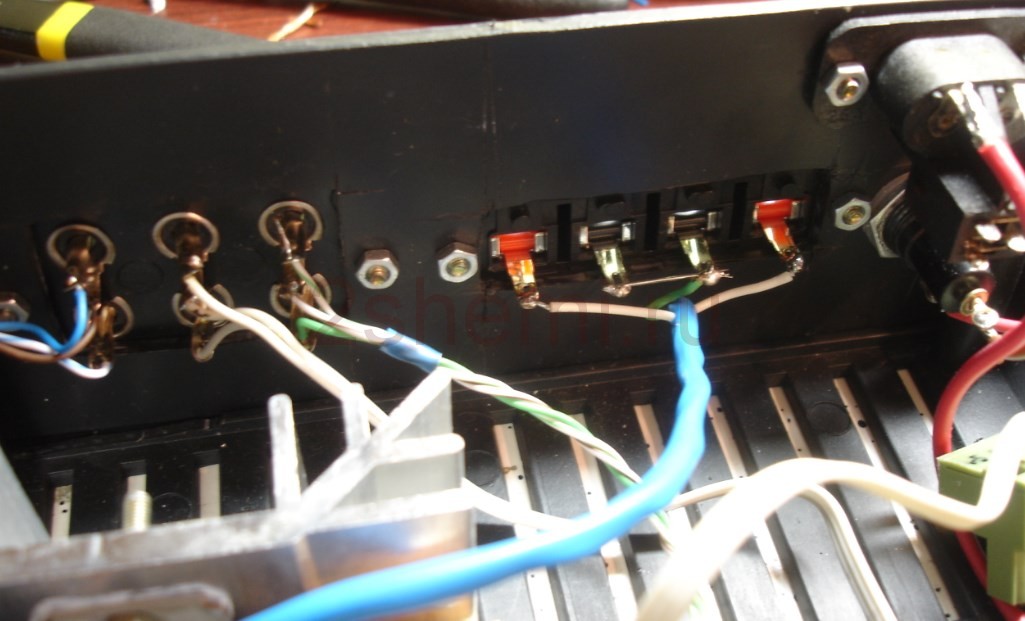 Задняя панель заполнена разъемом для сетевого кабеля, гнездом предохранителя, разъемом для подключения динамиков, входом / выходом. Далее ещё несколько фотографий из процесса создания аудио усилителя: