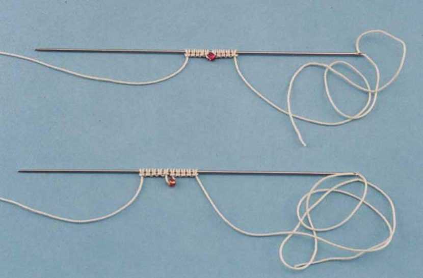 - Под ниткой на правом пальце левой руки игла протягивается, закручивается в кольцо, затягивается в полуузел.