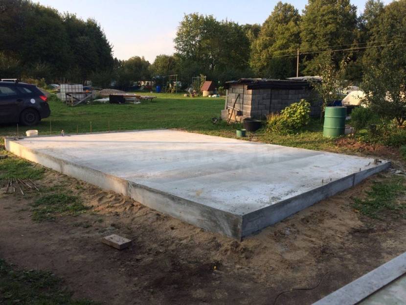 - Производится заливка бетона. Пользоваться изготовленной несущей плитой можно не ранее, чем через 3 недели. Все это время ее поверхность нужно смачивать водой.