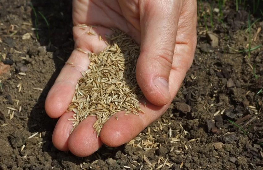 Важно! Чтобы газон взошёл равномерно, его сеют сначала вдоль, а потом поперёк. Для равномерности распределения семян их смешивают с песком, а площадку делят на квадраты
