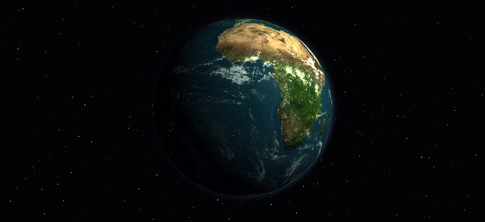 Сразу после запуска, по умолчанию, сервис показывает нашу планету Земля на фоне звездного пространства.