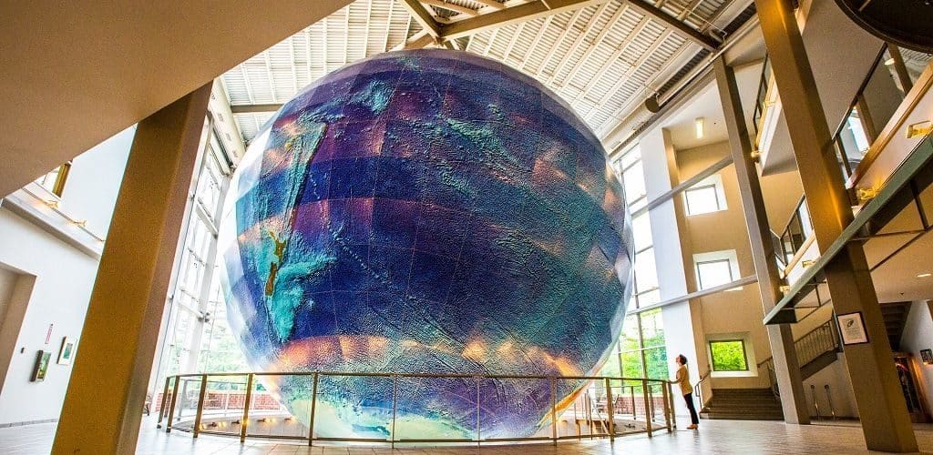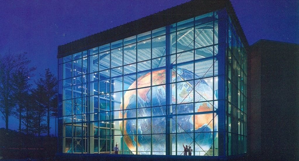 Строили гигантский глобус в течение двух лет, и окончательно он был запущен в «эксплуатацию» в 1998 году. Для его изготовления израсходовано более 6000 алюминиевых труб, а для покрытия поверхности шара использовано 792 листа с картами. На момент строительства Гугл-карт не было даже в проекте, поэтому трудно представить, насколько трудоемкой оказалась работа. База данных, в которой были собраны данные обо всех материках, странах и городах, весила около 140 Гб. Нереальная цифра по тем временам!