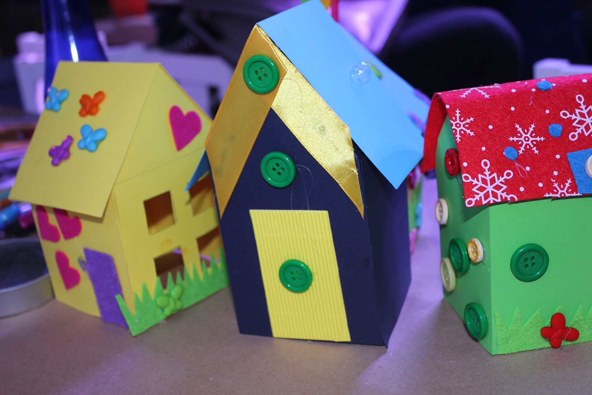 3. Исполните из выбранного материала здания, для всего из них соблюдая выбранный масштаб. Здание надобно исполнять максимально реально, вырисовывая либо прорезая и оформляя окна, балконы, входные двери.