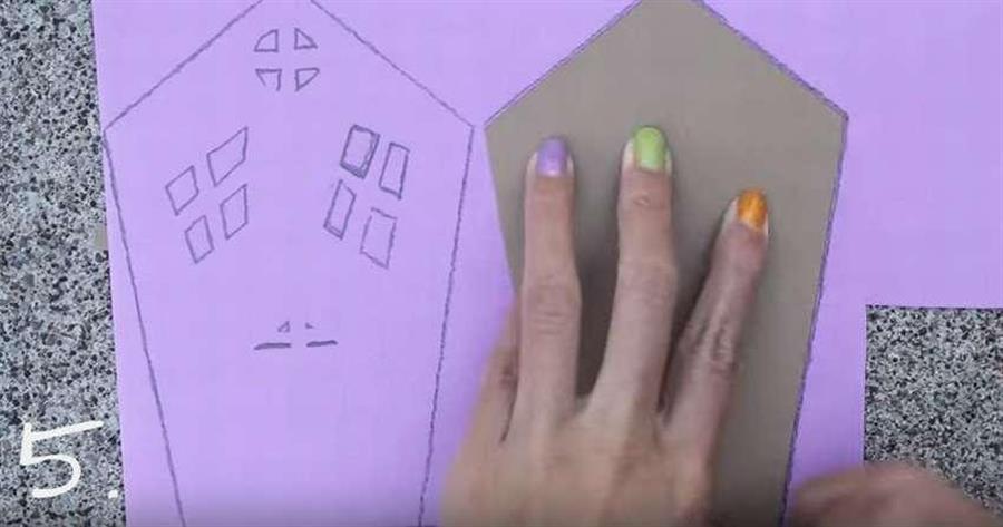 Вырежьте шаблон из бумаги и прорежьте окна и двери