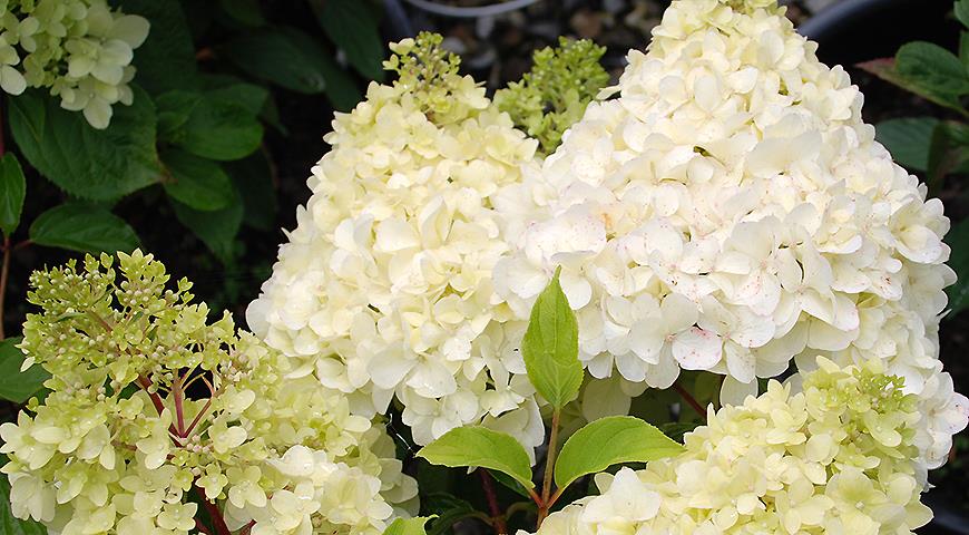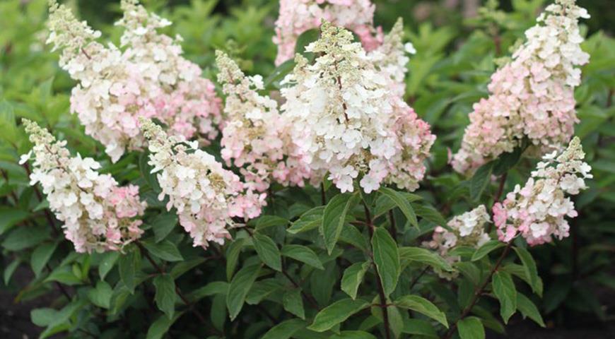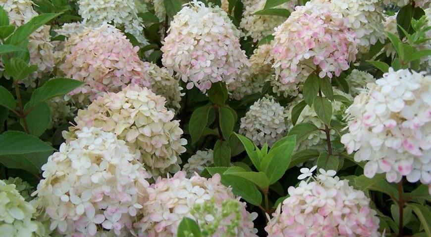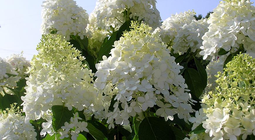 - «Snow Queen» (Снежная королева) – наверное, самый популярный сорт. Метелки держатся в вертикальном положении. Стерильные цветки крупнее и многочисленнее, что придает соцветию более плотный вид. Цветки со временем розовеют.