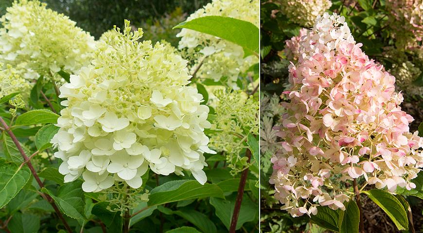 Гортензия метельчатая Levana (слева), Great Star (справа)