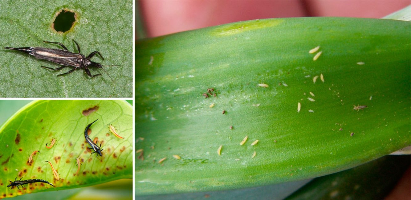 Поражение листьев трипсами