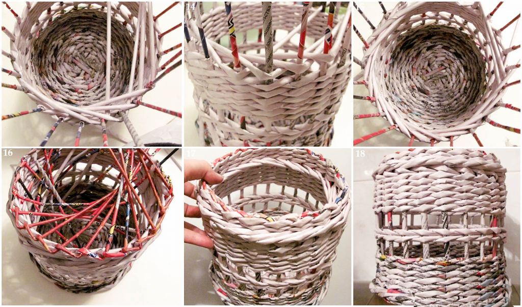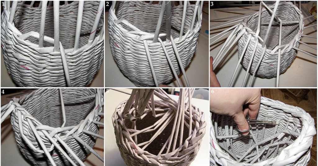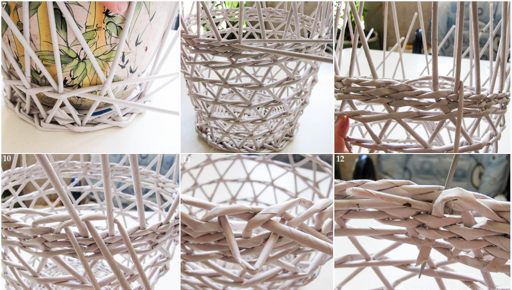 Разберём плетение из газетных трубочек пошагово.