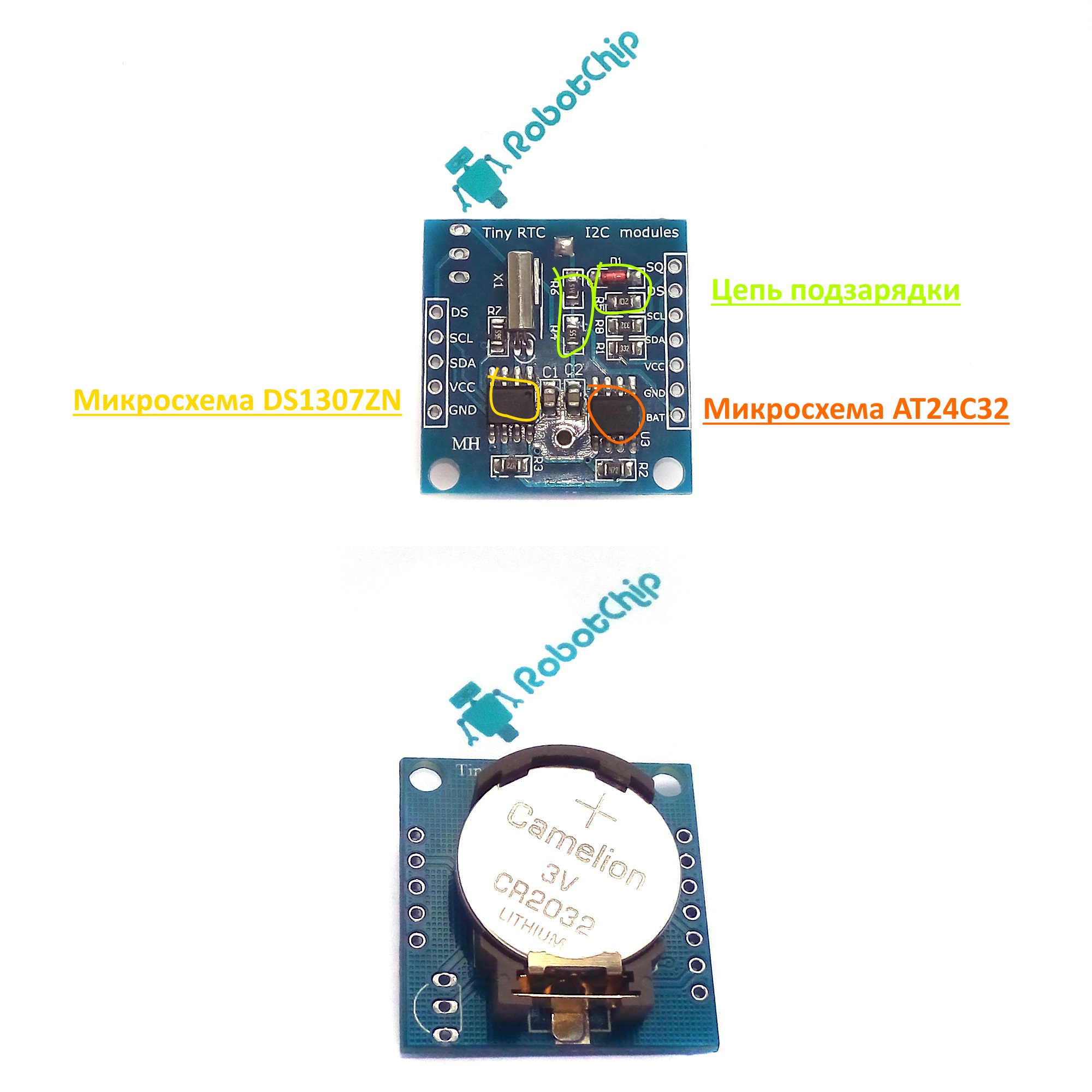 - SQW (на некоторых аналогичных модулях RTC) — дополнительный выход прямоугольного сигнала частотой 32768 Гц. В большинстве случаев не используется.