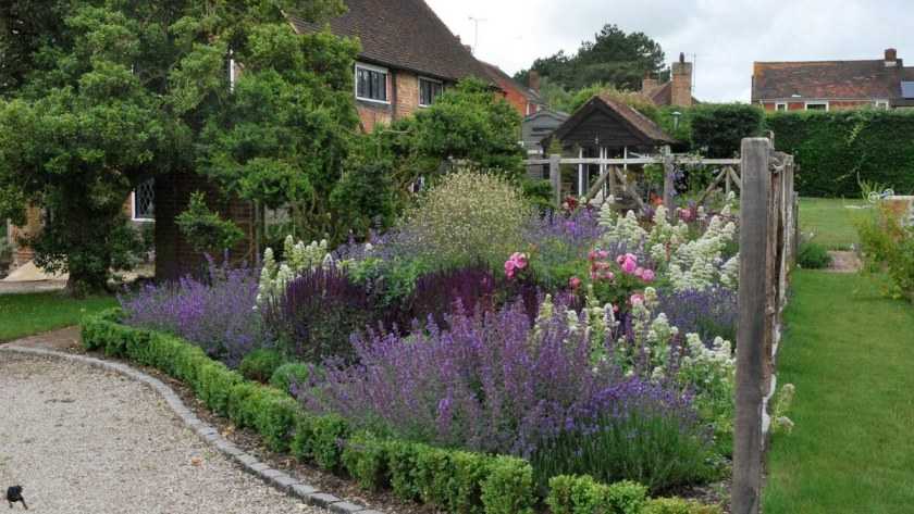 Этот стиль подойдет как для дачи, так и для создания своими руками простого ландшафтного дизайна двора частного дома.