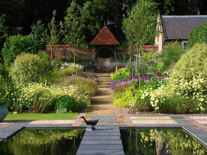 Во-первых, не игнорируйте такой элемент, как садовые дорожки. Они должны располагаться и на маленьком участке, и тем более, на большой территории. Именно дорожки облегчат процесс ухода за садом и сделают прогулки по своим угодьям намного приятнее. Ведь вам не придется добираться до любимых растений через грязь и сорняки. Если участок совсем небольшой, делайте меньше отдельных зон, а тропы сужайте.