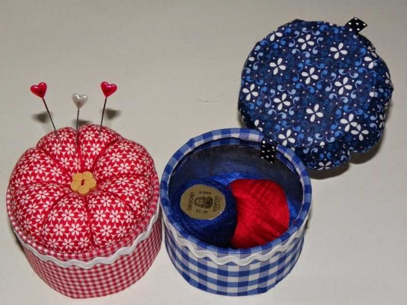 Комбинированная техника. В качестве примера можно привести игольницу, размещенную на крышке стеклянной или пластиковой банки. Внутри емкости можно хранить пуговицы, фурнитуру, нитки, а сверху булавки и иглы.