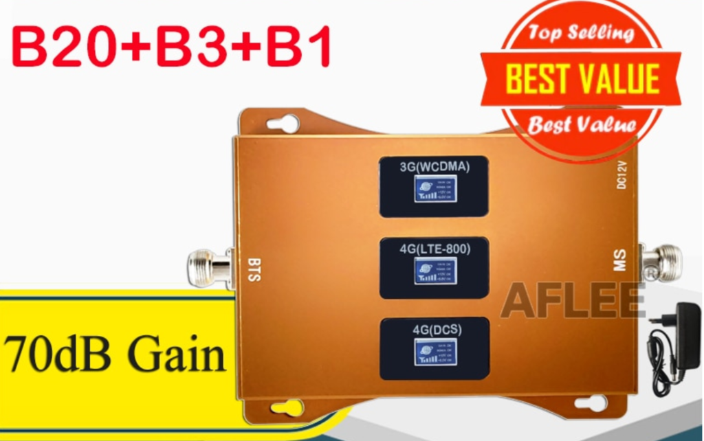 Этот трехполосный усилитель мобильного сигнала 2G, 3G, 4G LTE, функционирует в частотных диапазонах от 832 МГц до 2170 МГц.