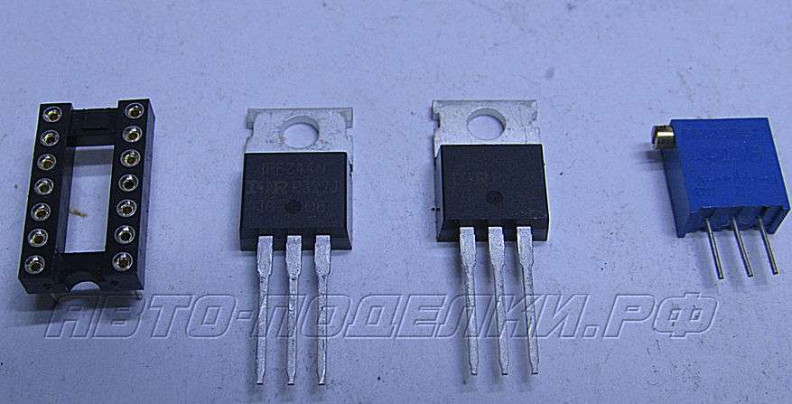 Транзисторы IRFZ44 либо лююбые другие N-канальные , с напряжением от 50 Вольт и с током от 30 Ампер и выше. Мощность инвертора составляет около 150 ватт и при использовании более мощных ключей ( например – IRF3205) может быть увеличена до 250-300 ватт.