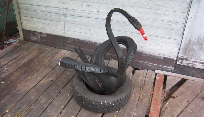 Идей применения старых покрышек множество, начиная от изготовления подошвы для обуви, и заканчивая строительством самого настоящего септика. Кто-то использует старую резину от автомобиля для изготовления садовых дорожек, ну а кто-то, делает из ненужной покрышки, красивого и грациозного лебедя.