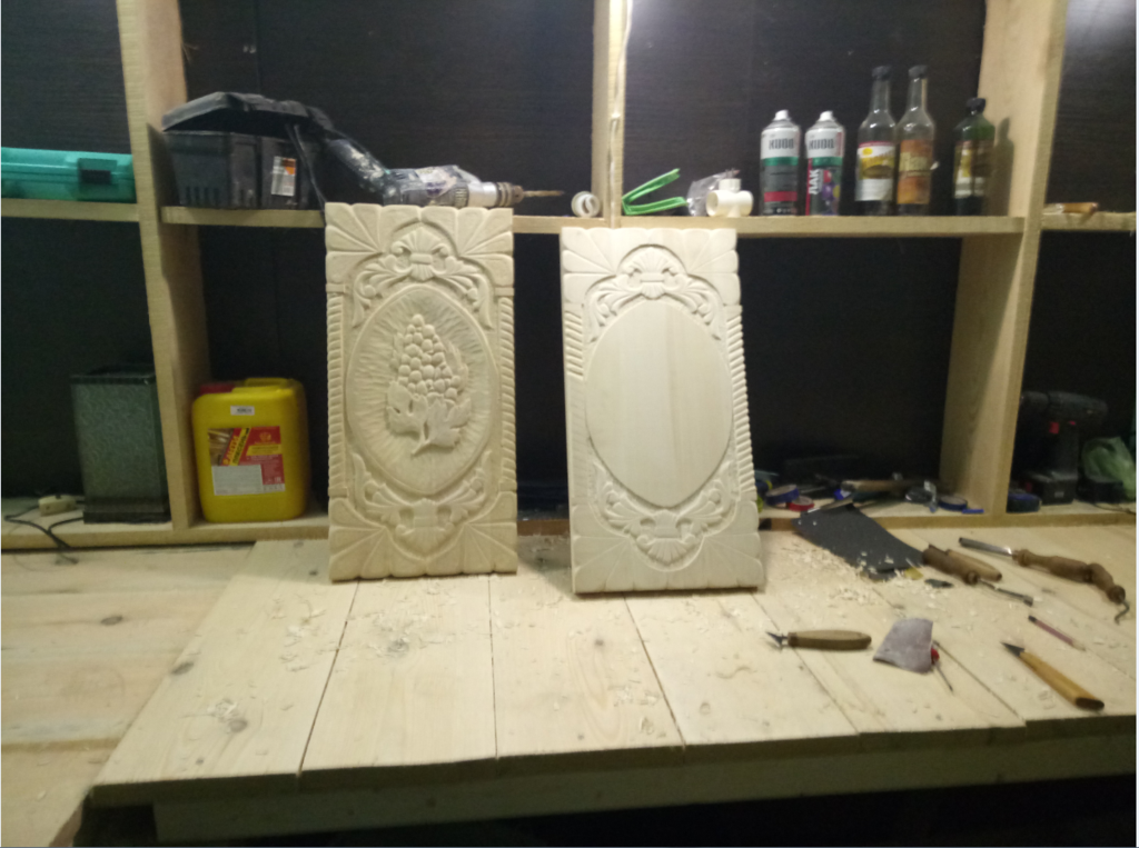 - Отдельно можно выделить такой вариант, как художественные поделки. Основной прием – резьба по дереву.