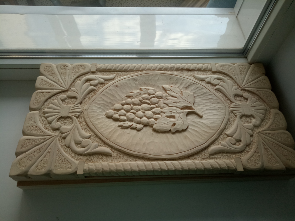 Геометрическая резьба (именно этому направлению в резьбе нас учили) представляет собой орнамент состоящий из геометрических фигур таких как: треугольник, круг и других. Техника резьбы сводится к прорезанию рисунка по контуру, с последующим удалением его частей.