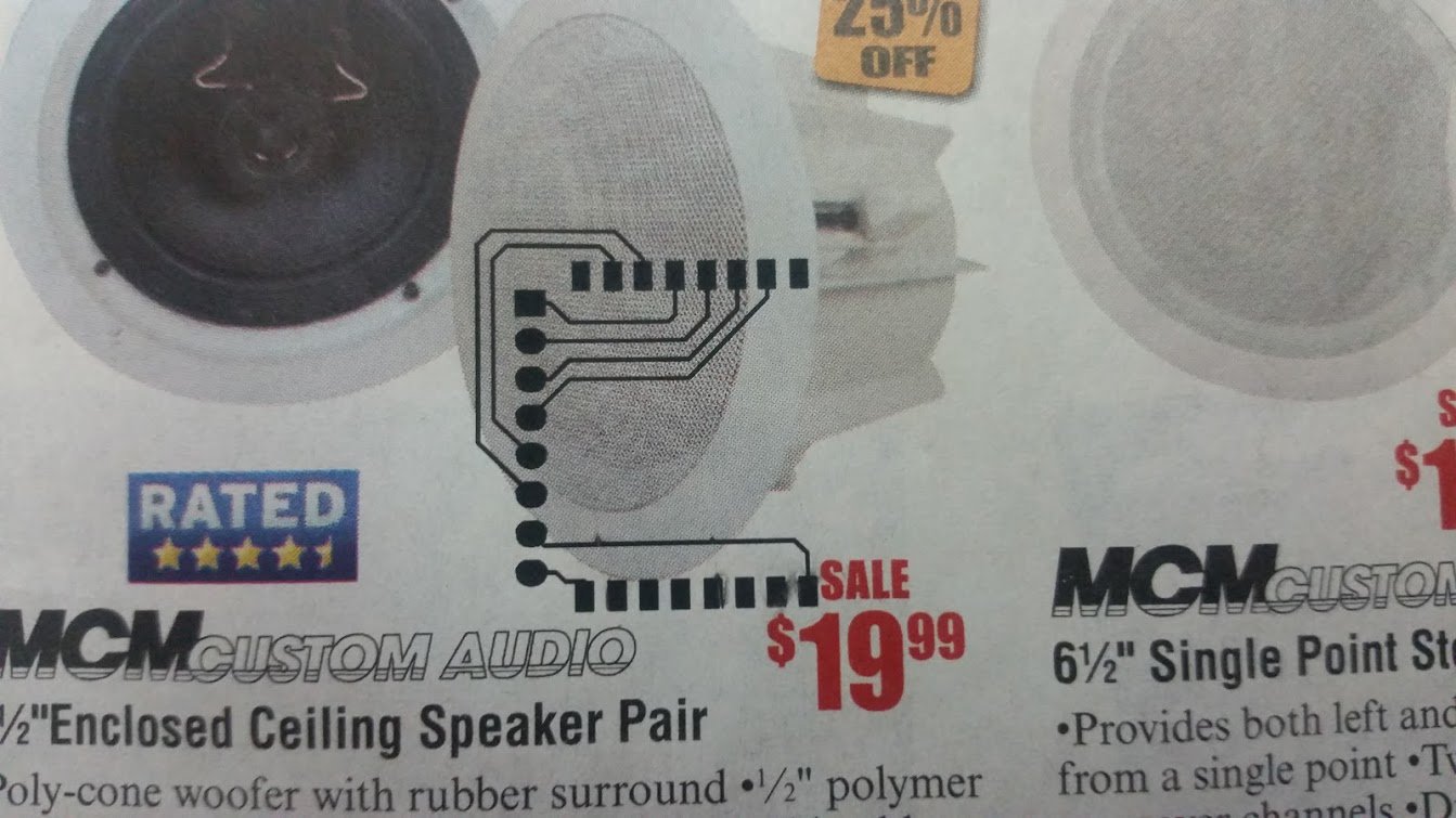 Теперь, когда чертеж экспортирован, вы можете его распечатать. Вырвите из журнала страницу и вставьте ее лоток ручной подачи лазерного принтера. То, что на странице уже что-то напечатано, не имеет никакого значения; нам важен лишь наносимый на нее тонер. Убедитесь, что на напечатанном рисунке нет размазывания и не отпечатавшихся пропусков; если всё же они есть, то вставьте другую страницу и повторите попытку снова.