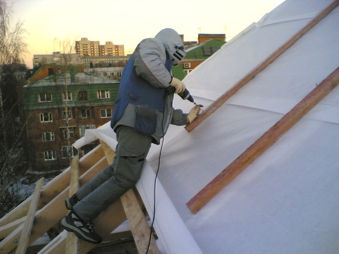 Необходимо, чтобы мембрана ложилась ровно, не выступала, набухала или провисала. Изоспан А закрепляется с помощью деревянных реек и гвоздей.