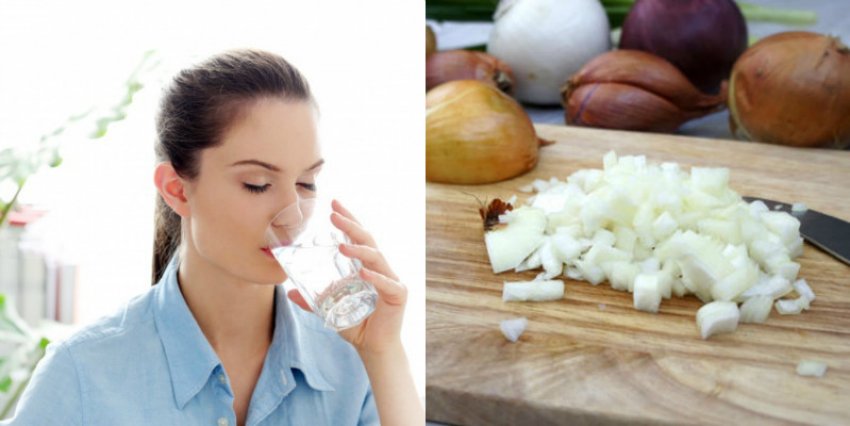 Употребление воды во время нарезания лука