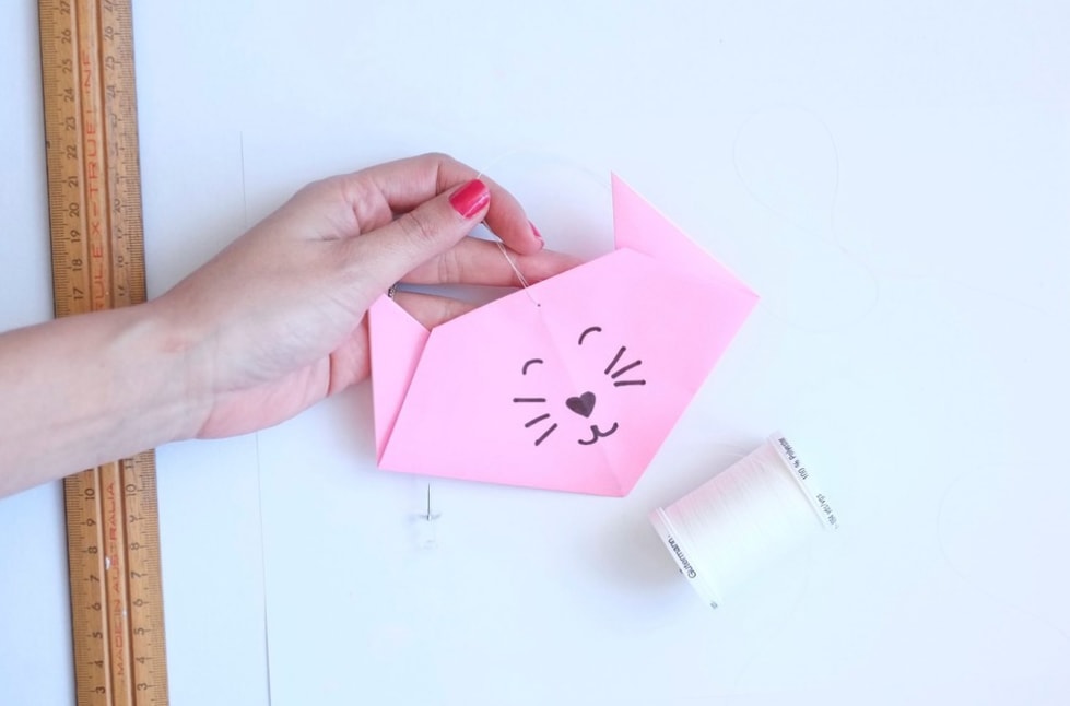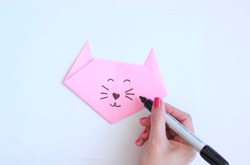 Переворачиваем заготовку и рисуем мордочку кота маркером.