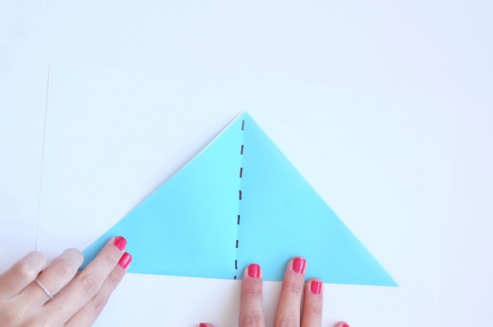 Снова складываем лист в виде треугольника и разворачиваем обратно.