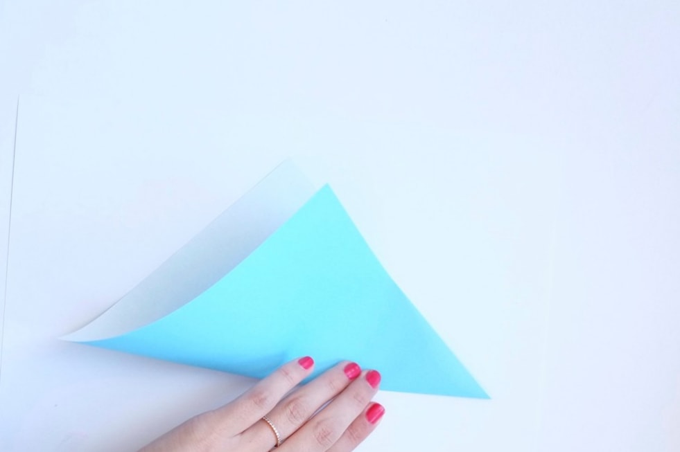 Берем второй лист бумаги и складываем его пополам в виде треугольника.