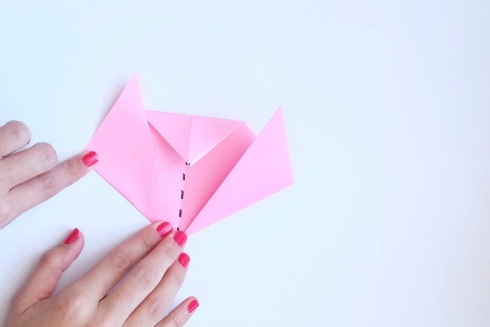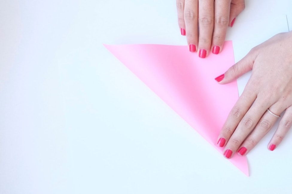 - Боковые стороны полученного треугольника сворачиваем по направлению к центру.