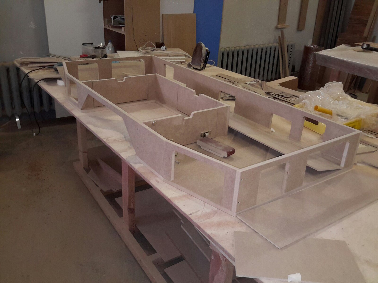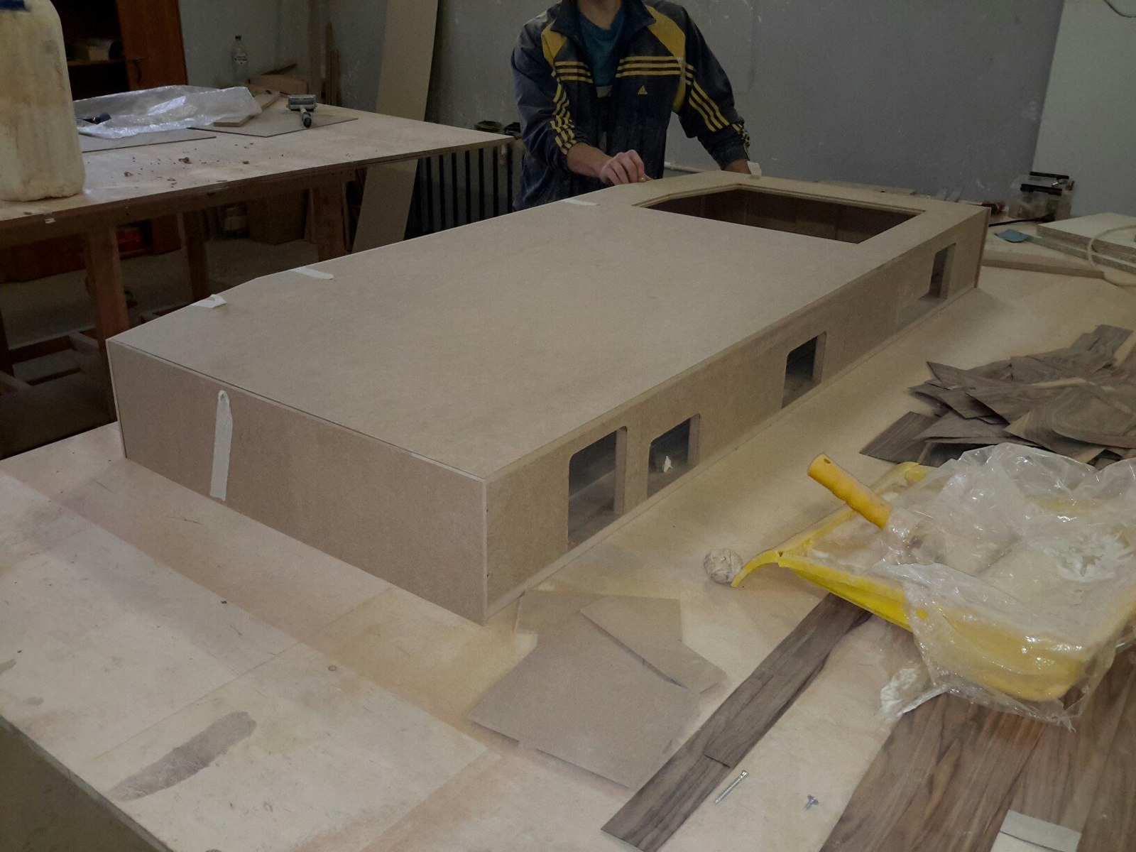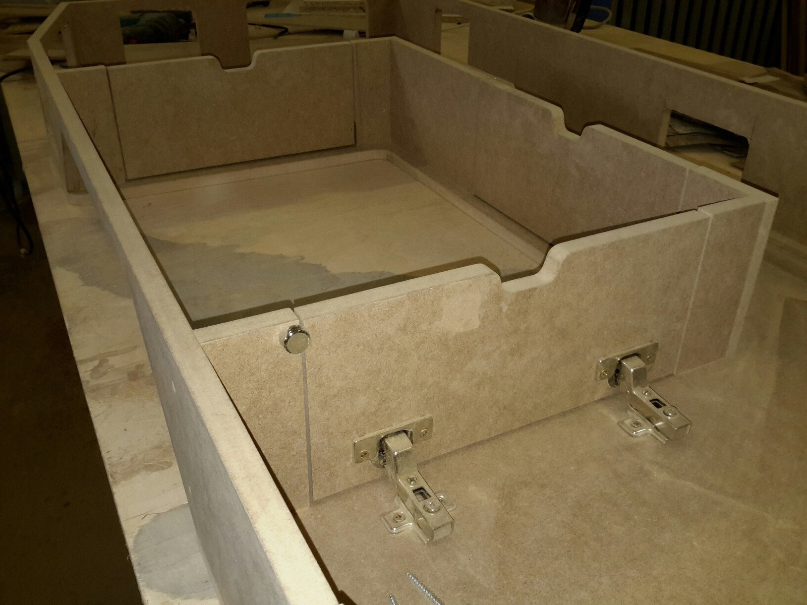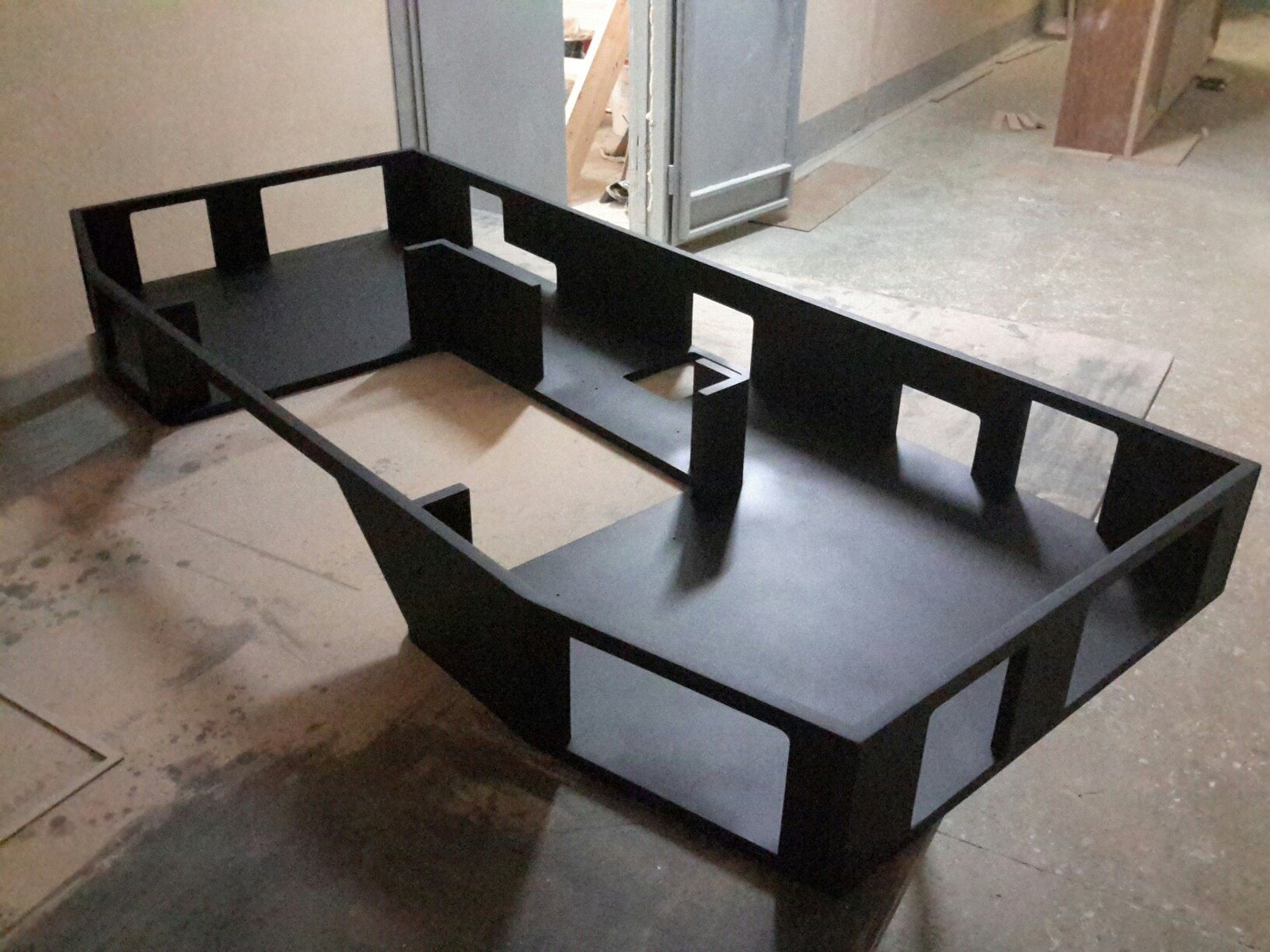 - В передней планке столешницы вырезают необходимое количество технических отверстий для установки кнопок, переключателей, динамиков.