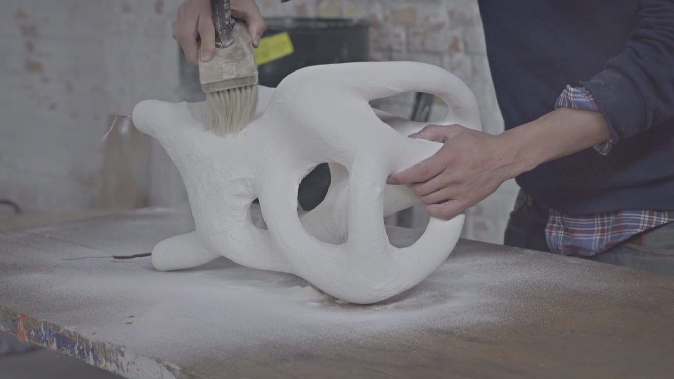 Внутрь контейнера, заполненного смесью кварцевого песка и нейлонового порошка, помещают нихромовую проволоку. Через нее пропускают электрический ток — нейлон оплавляется и принимает заданную форму. Так сыпучее вещество превращается в твердый, безупречно спаянный материал, подобный кости. Эта технология открывает безграничные возможности для создания объектов самых разных форм, размеров и назначения. Hot Wire Extensions делает мебель, светильники, скульптуры и пространственные инсталляции, а также выполняет специальные заказы. Среди клиентов Фабио Андри — государственные учреждения, галереи дизайна, магазины и частные лица.