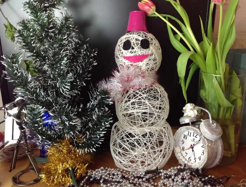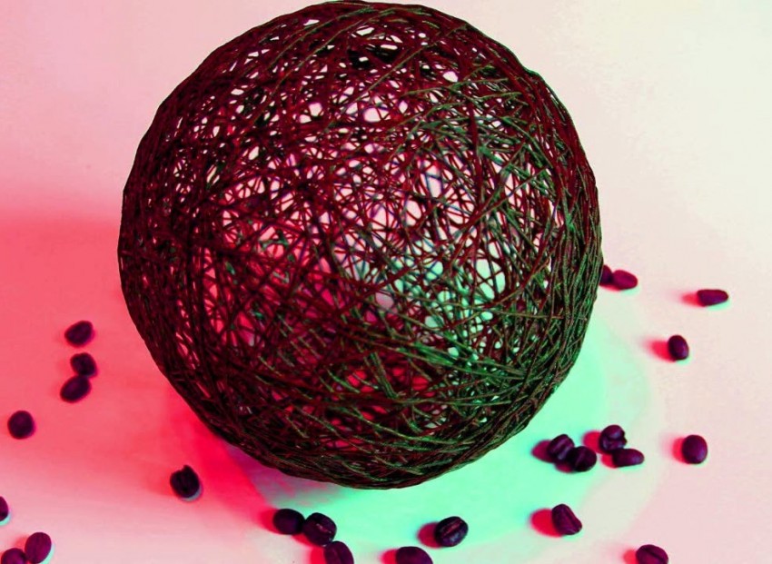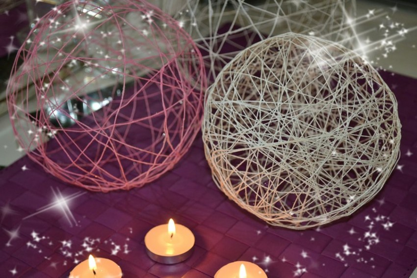 Воздушный шар смазывают маслом или вазелином. Хаотично наматывают нитки на шар. Изделие необходимо оставить на один день для того, чтобы хорошо просушить.