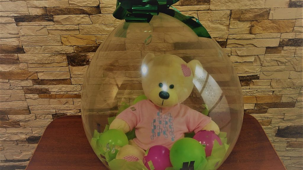 - Методика изготовления такого шара точно такая же, нот есть один нюанс – внутрь шарика, до того, как его надуть, помещается любой предмет, который в итоге будет сюрпризом.