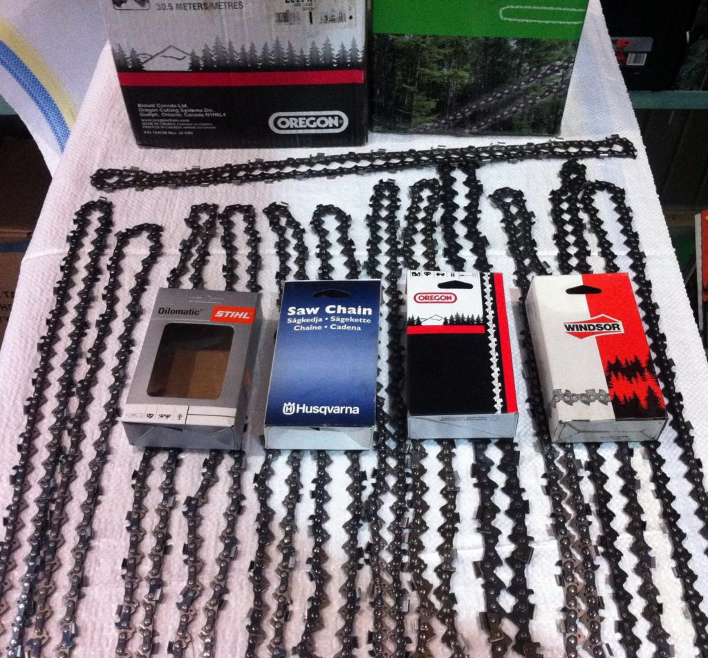 Для ремонта задействуются не растянутые цепи с относительно маленький выработкой ресурса, получившие частичные повреждения при обрыве либо попадании режущих звеньев на находящиеся в древесной породе железные включения.