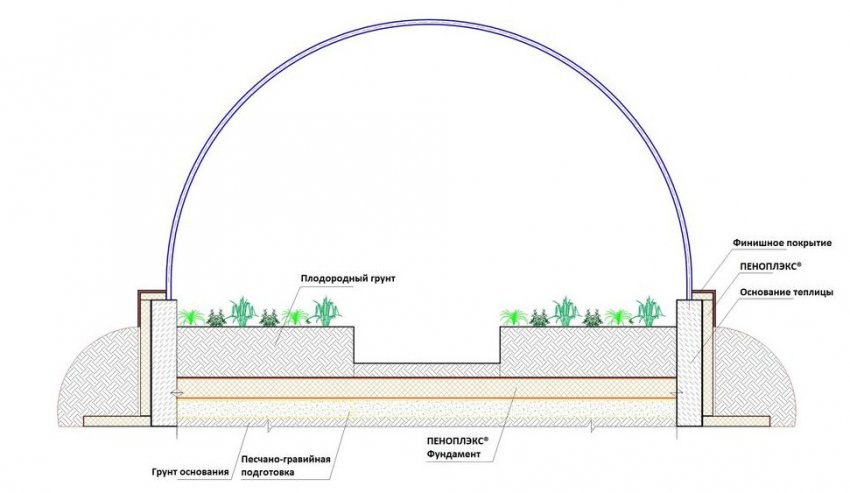 Правильно выполненный фундамент сам по себе уже способен сделать теплицу более тёплой, предотвратив контакт растений с промёрзлой землёй. Однако при использовании тепличного сооружения в заморозки его также нужно утеплить подручными или специальными средствами и материалами.