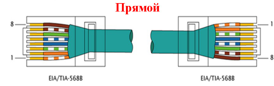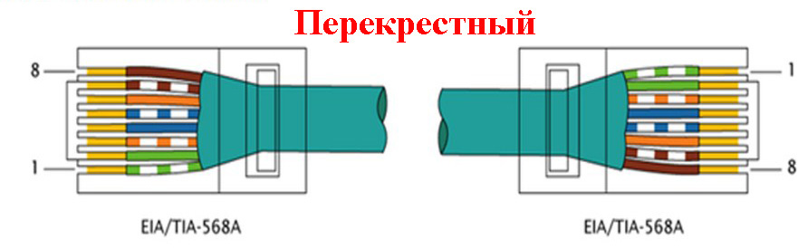 Как вы уже поняли провода в штекере необходимо как то расположить по какому-то порядку. Порядок этот называется «распиновка». У нас можно выделить два варианта расположения проводов: первый — 568в (прямой), второй – 568а (перекрестный).