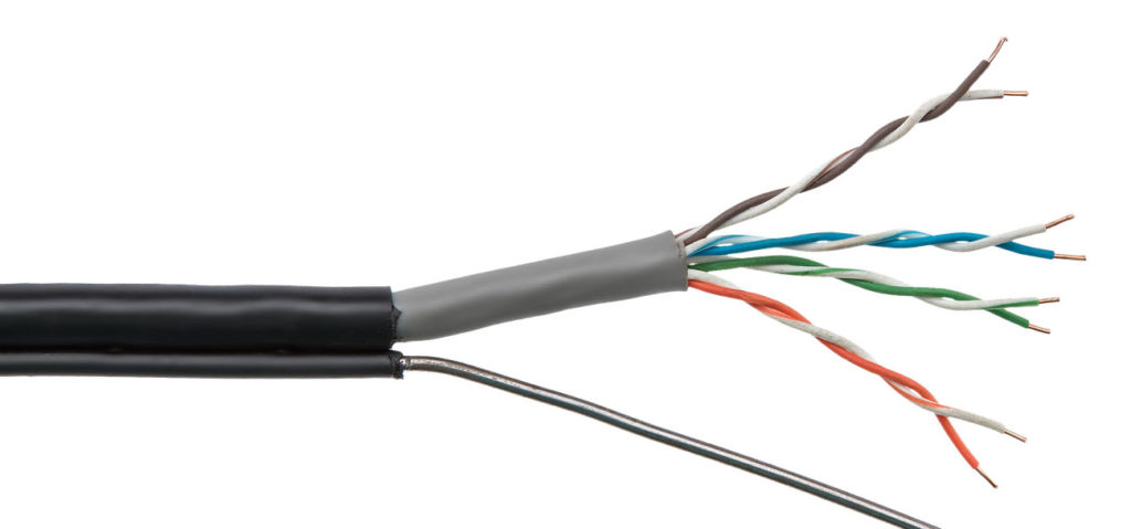 Если протяженность кабеля будет большая, тогда берите витую пару с дополнительной проволокой. Она будет надежно удерживать провод от разрывов.