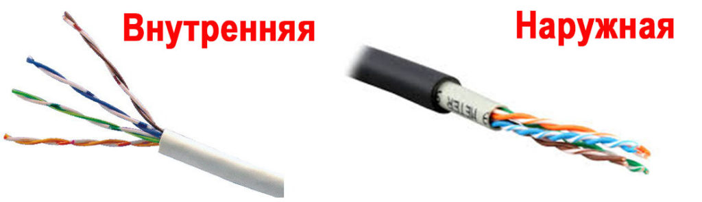 Потому что для внутренней прокладки подойдет самая простая и дешевая витая пара. А вот для внешней (на улице) нужно брать с дополнительной защитой (двойная оплетка, защищающая от природных явлений, таких как: солнце, дождь, снег, мороз)