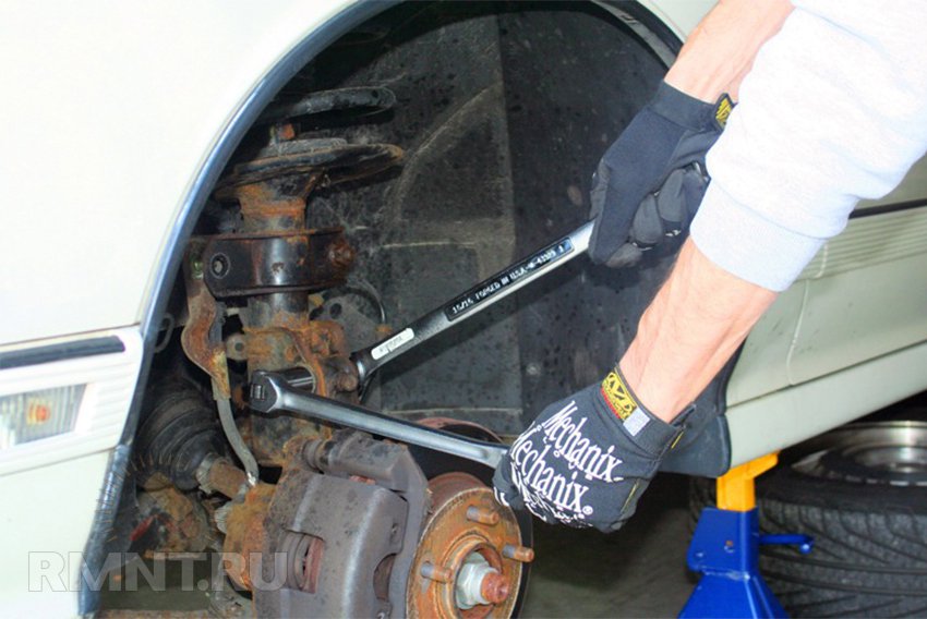 Пока гайка горячая, ее отвинчивают рожковым или торцовым ключом. Если сразу выкрутить не удалось, повторяют процедуру и используют комбинированные методы (рычаг, обстукивание, расшатывание).