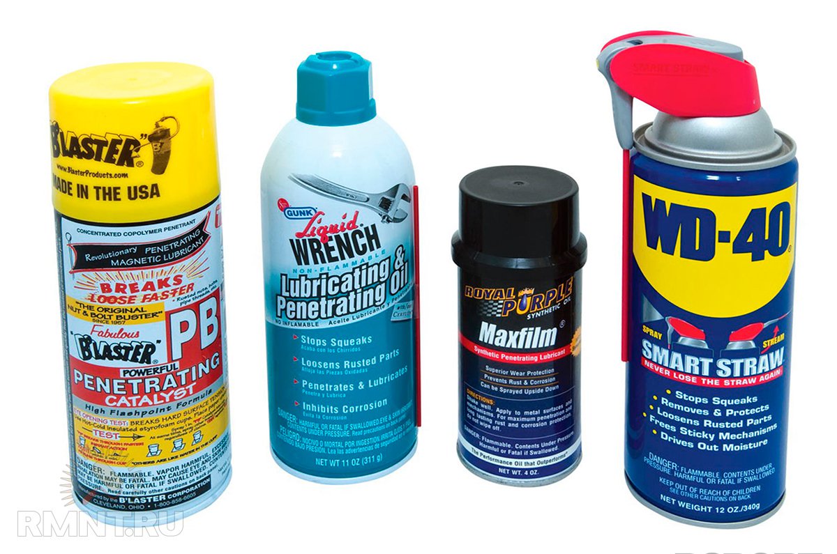В арсенале любого опытного автолюбителя всегда найдется набор жидкостей для борьбы со ржавчиной и другим налетом. В основном используют WD-40 с хорошей проникающей способностью в микрозазоры, стоимость которого начинается от 100 рублей. Наряду с ним, применяют тормозную жидкость, уайт-спирит, керосин, кока-колу. В отличие от WD-40 другие жидкости воздействуют слабее, и лучше налить их в емкость и поместить в нее прикипевшее соединение для большего эффекта.
