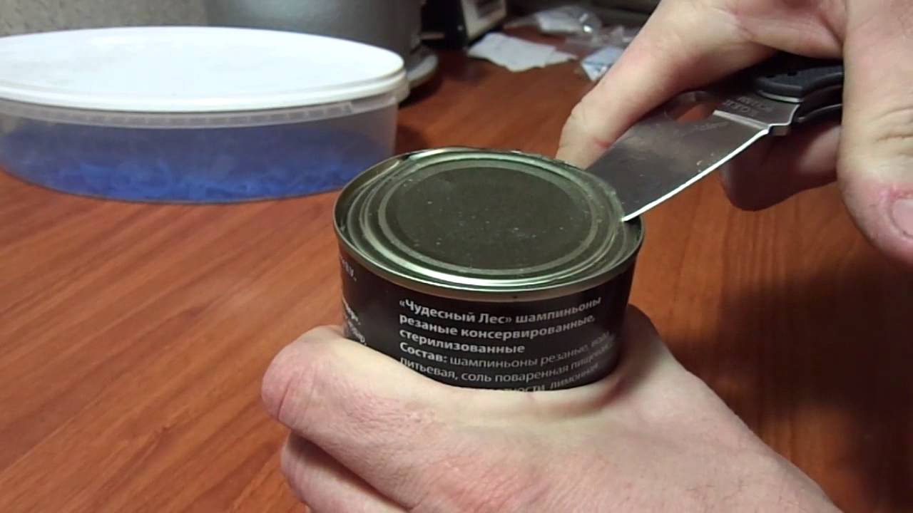- в случае отсутствия ножа можно стукнуть снизу по донышку, аккуратно перевернув банку, после чего должен при откупоривании появится характерный хлопок.