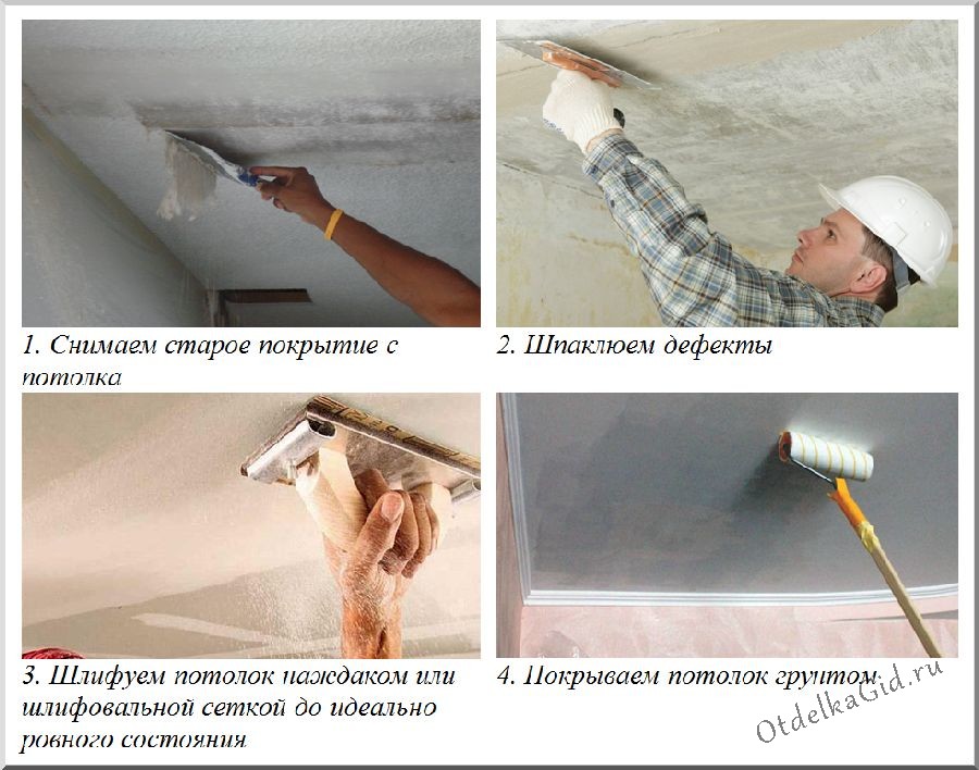 После этого необходимо зашлифовать покрытие машинкой или наждачной бумагой, удалить образовавшуюся пыль с помощью пылесоса или просто смахнуть ее с потолка. Затем с помощью валика или кисти нужно нанести грунтовку с антисептическим действием. Через 4 часа следует покрыть поверхность грунтовкой глубокого проникновения. Это делается для улучшения адгезии потолка со штукатурным составом.