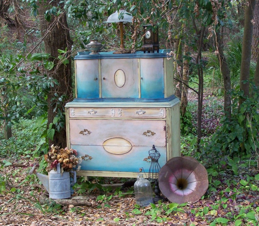 Необязательно расписывать комод или шкаф со всех сторон: отдельные акценты на фасадах смотрятся эстетичней.