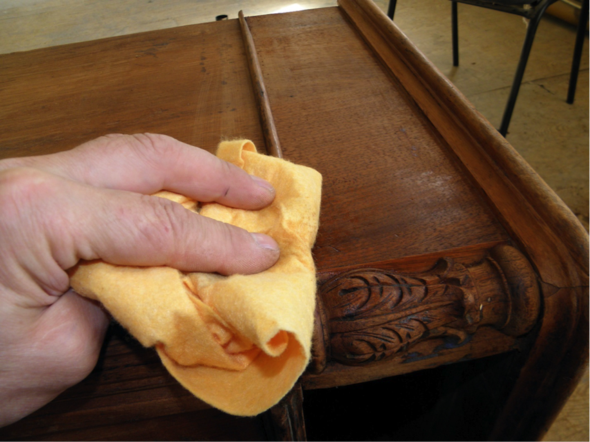 Свежесть натуральной древесине придают специальные полирующие средства, которые можно найти в любом строительном или мебельном магазине